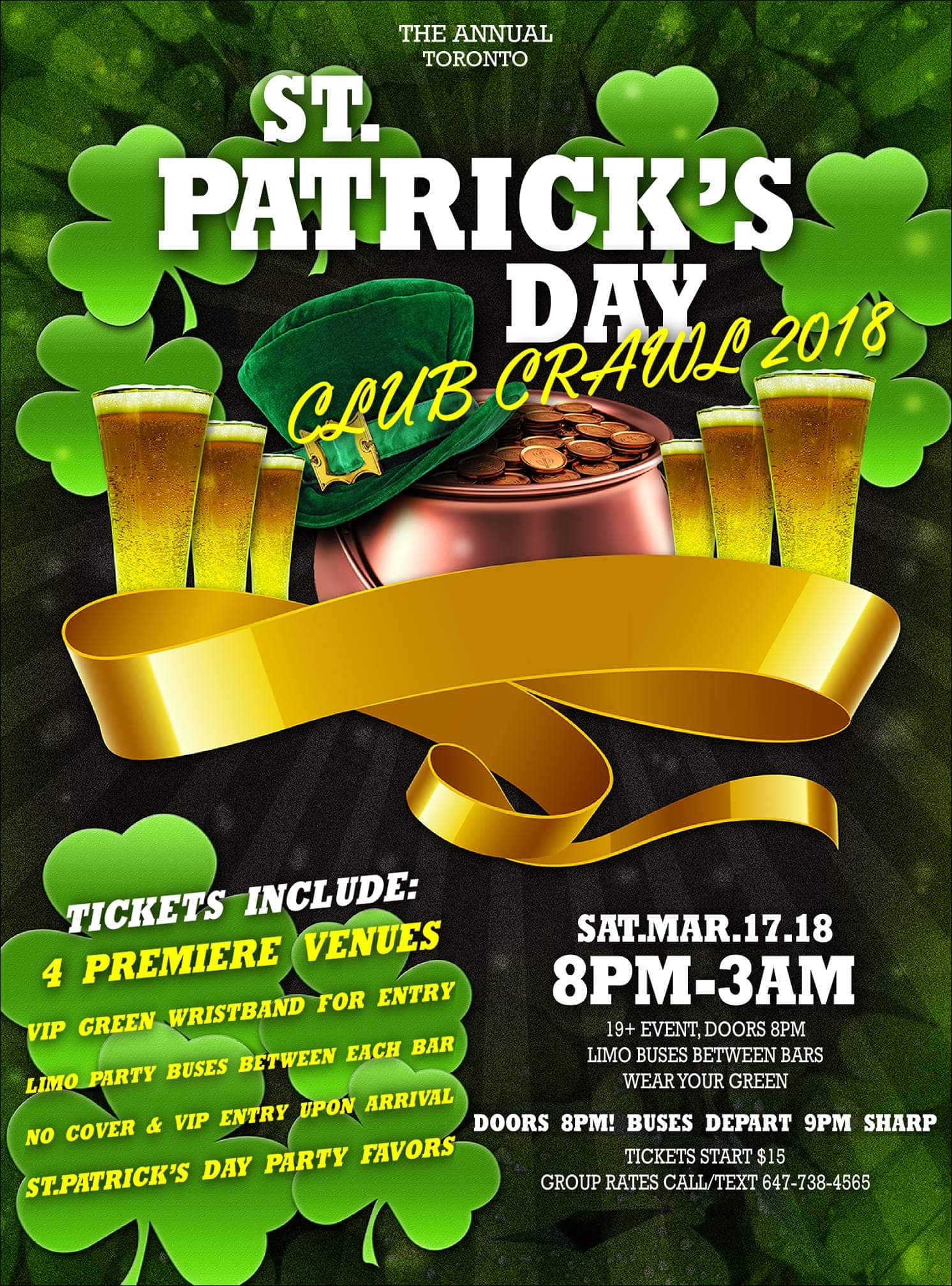 St. Patrick's Day in Toronto events & parties tickets. Guide to the best pub/club Crawl.