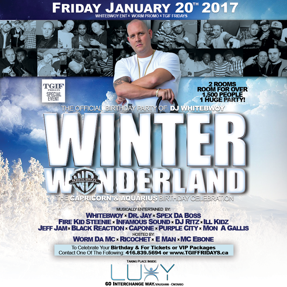 DJ WHITEBWOY - Toronto's Top Events, Nightclub & Concert Listings! Hosted By Canada's #1 Reggae DJ! Whitebwoy has shared the stages with the best in the world. From Canada, To Jamaica..... From Italy To Guyana... Beenie Man.... To Drake. Mavado.... To Fabulous. Catch Dj Whitebwoy In All Of Toronto's Top Nightclubs!!! 2016 Carribean Awards Top Reggae Dj Of The Year Canada's 2012 Stylus Reggae Dj Of The Year. 3x Stylus Reggae Dj Of The Year Nominee