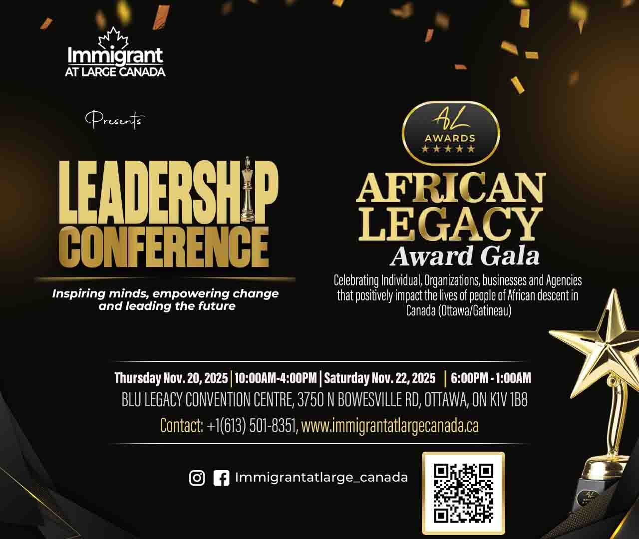 The Leadership Conference & African Gala Night 2025 is a landmark event dedicated to empowering African-Canadian voices, celebrating excellence, and building bridges across communities. Taking place in 20th & 22nd November 2025, this dynamic two-part gathering will feature: