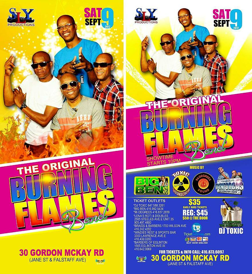 Catch the legendary Original Burning Flames Band from Antigua, one of the Caribbean's greatest bands live in concert on Saturday September 9th 2017. Come out and fete with "The Flames" as they jam all of their biggest hits and mash up the place as only they can.