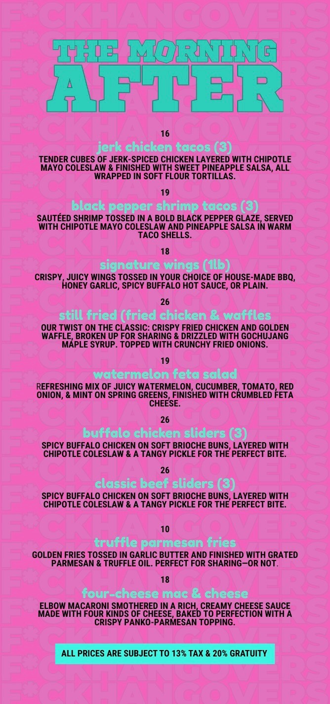 Great food from @themorningafterto ‘s night time menu, fire drinks and the city’s hottest DJs spinning all night: