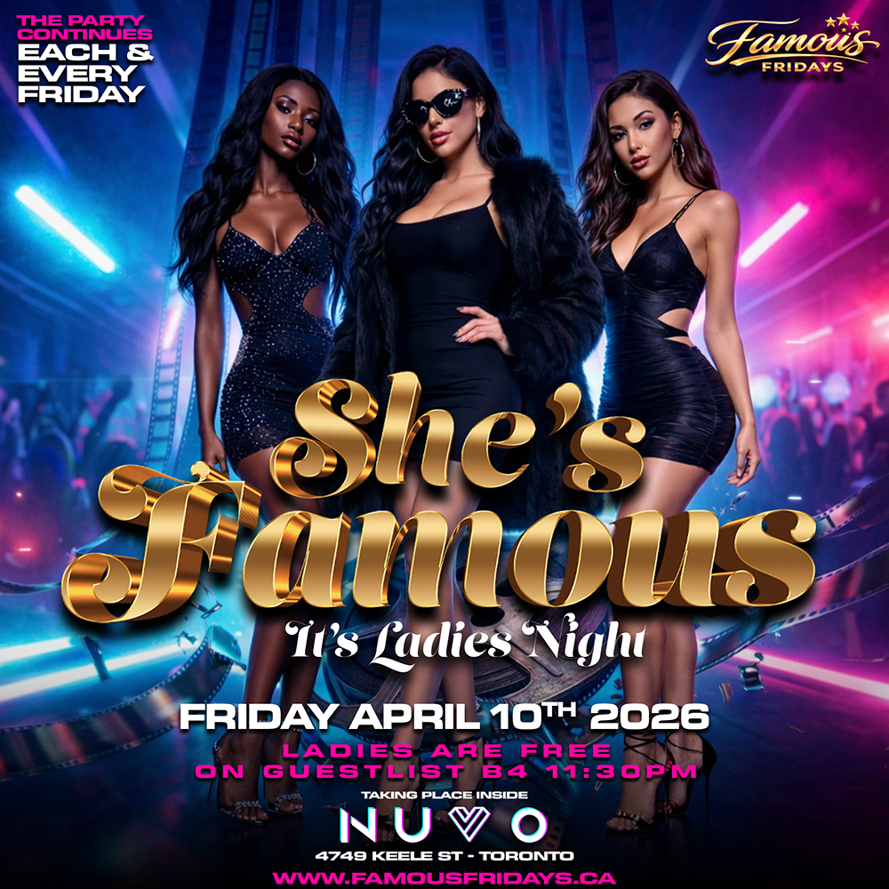 Get ready for another unforgettable edition of Famous Fridays as we present “She’s Famous” – Ladies Night inside one of Toronto’s newest nightlife destinations, NUVO Toronto.