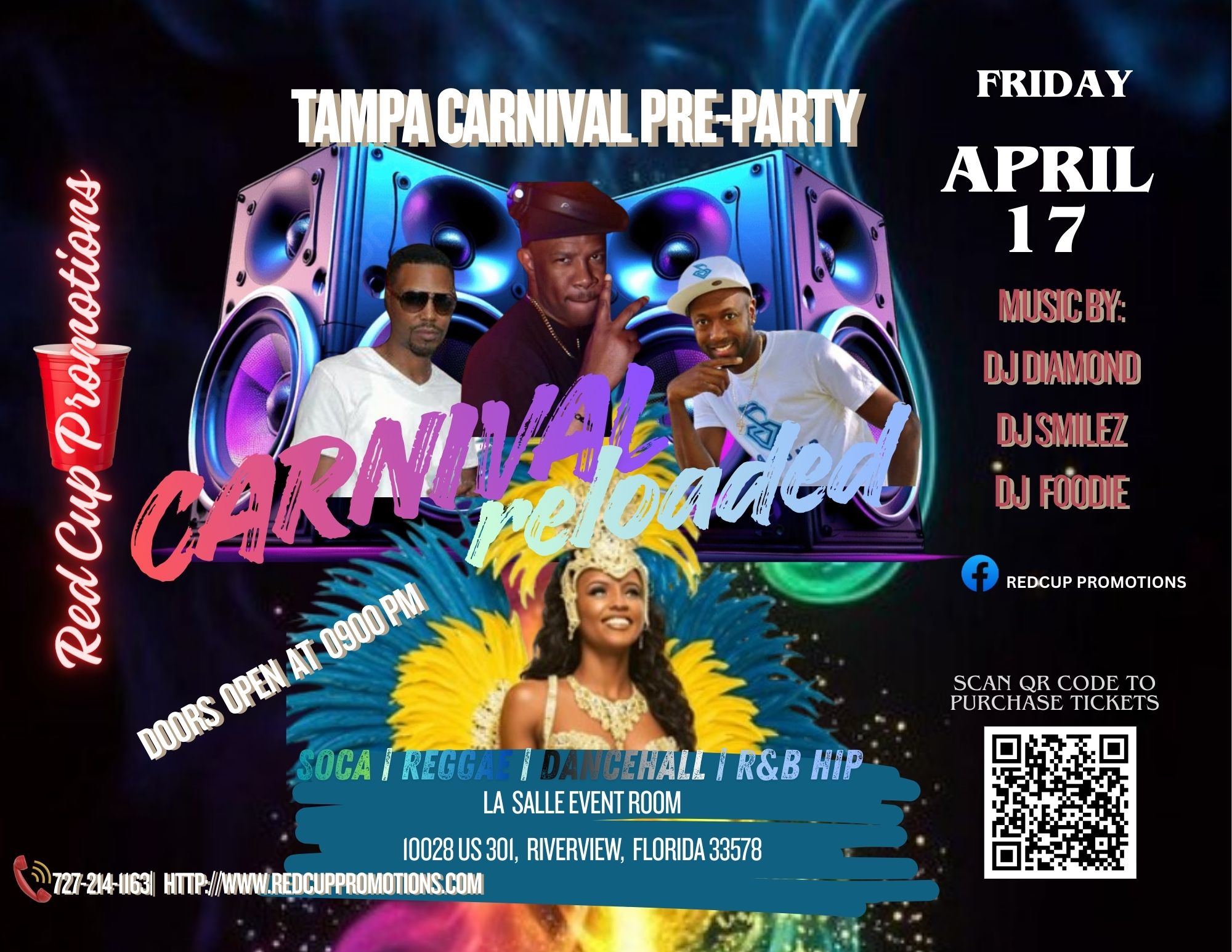 Carnival season starts early with the Tampa Carnival Pre-Party – Carnival Reloaded, brought to you by Red Cup Promotions. This high-energy kickoff sets the tone for Carnival weekend with nonstop soca, reggae, dancehall, and hip-hop vibes. Join us for an unforgettable night of music, culture, and pure Carnival energy as top DJs keep the crowd moving all night long. Doors open at 9:00 PM—come early, come ready, and reload for Carnival!