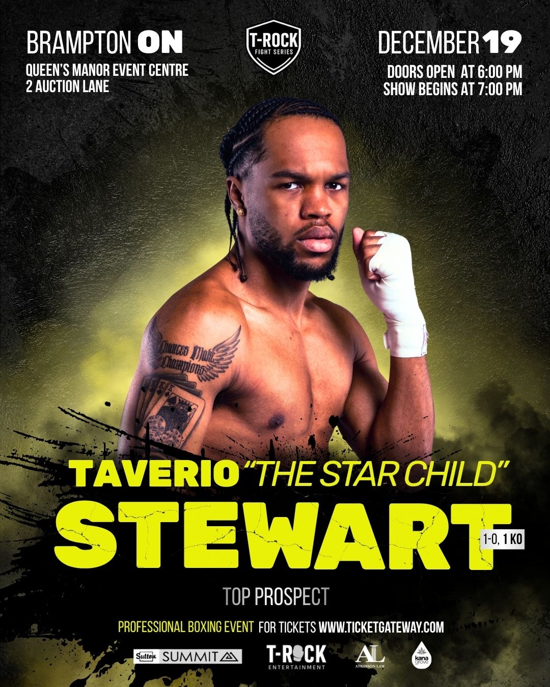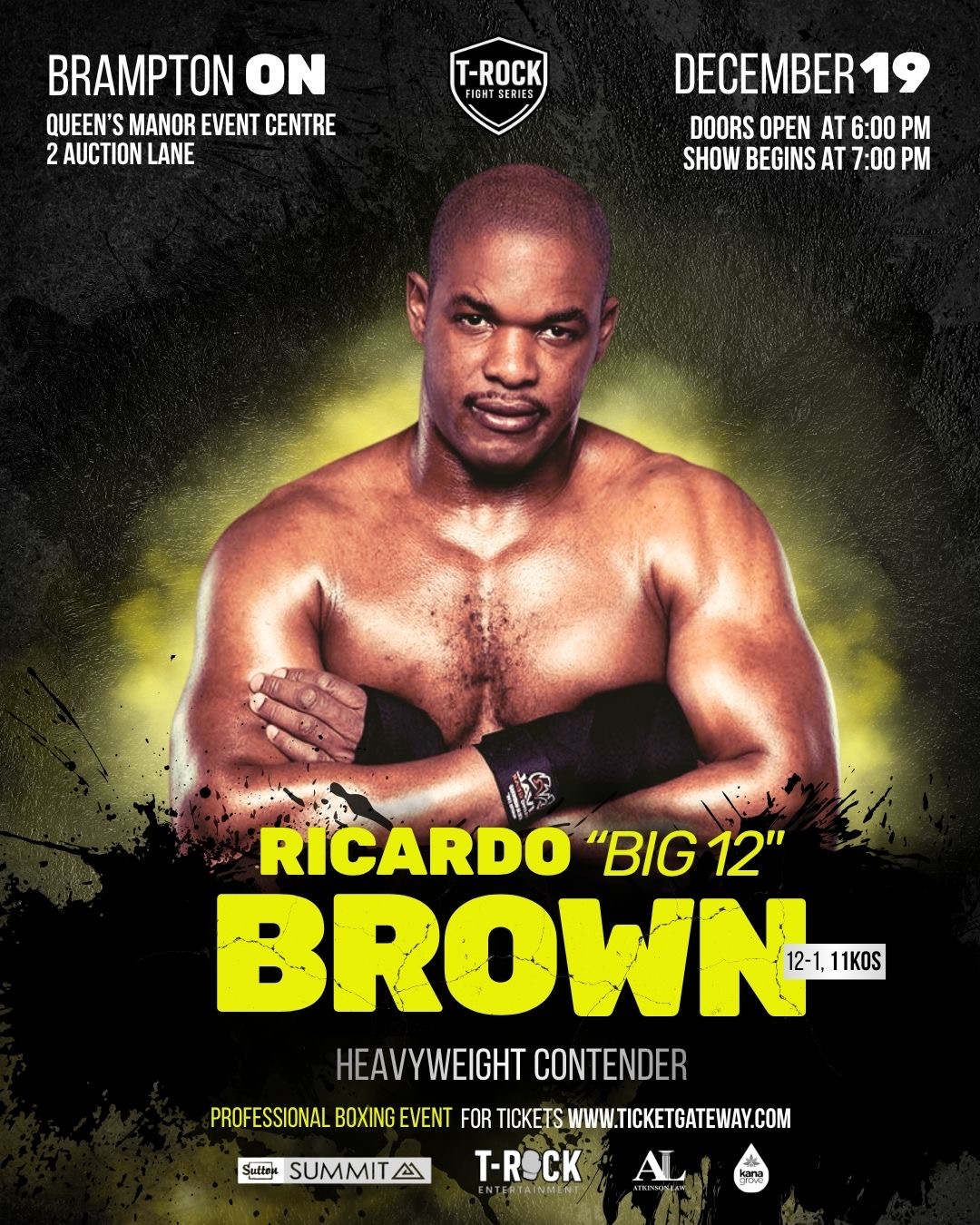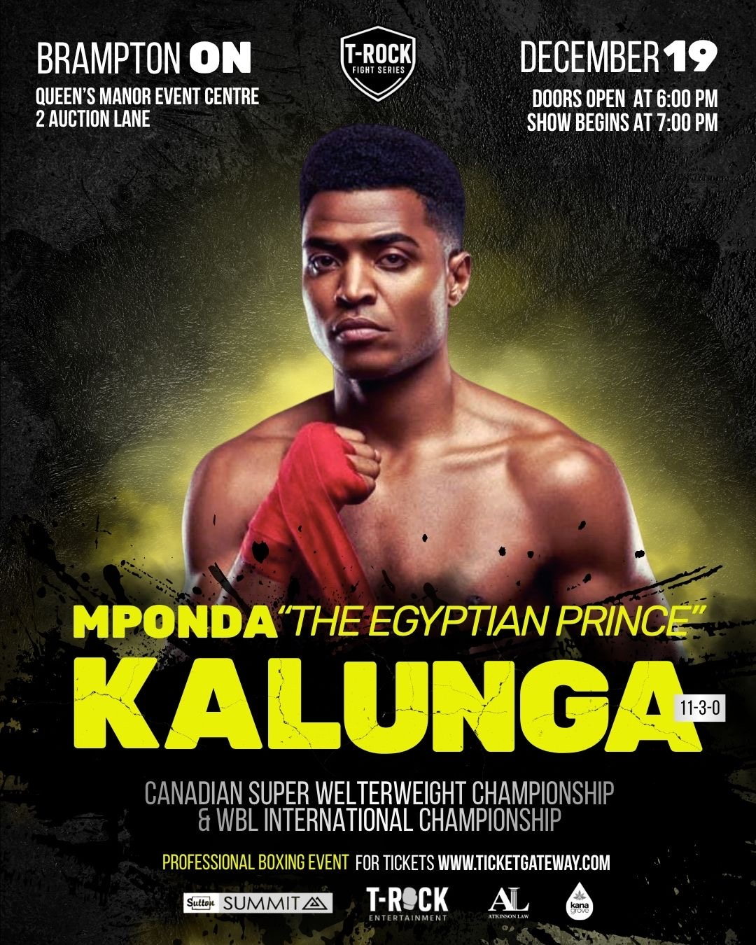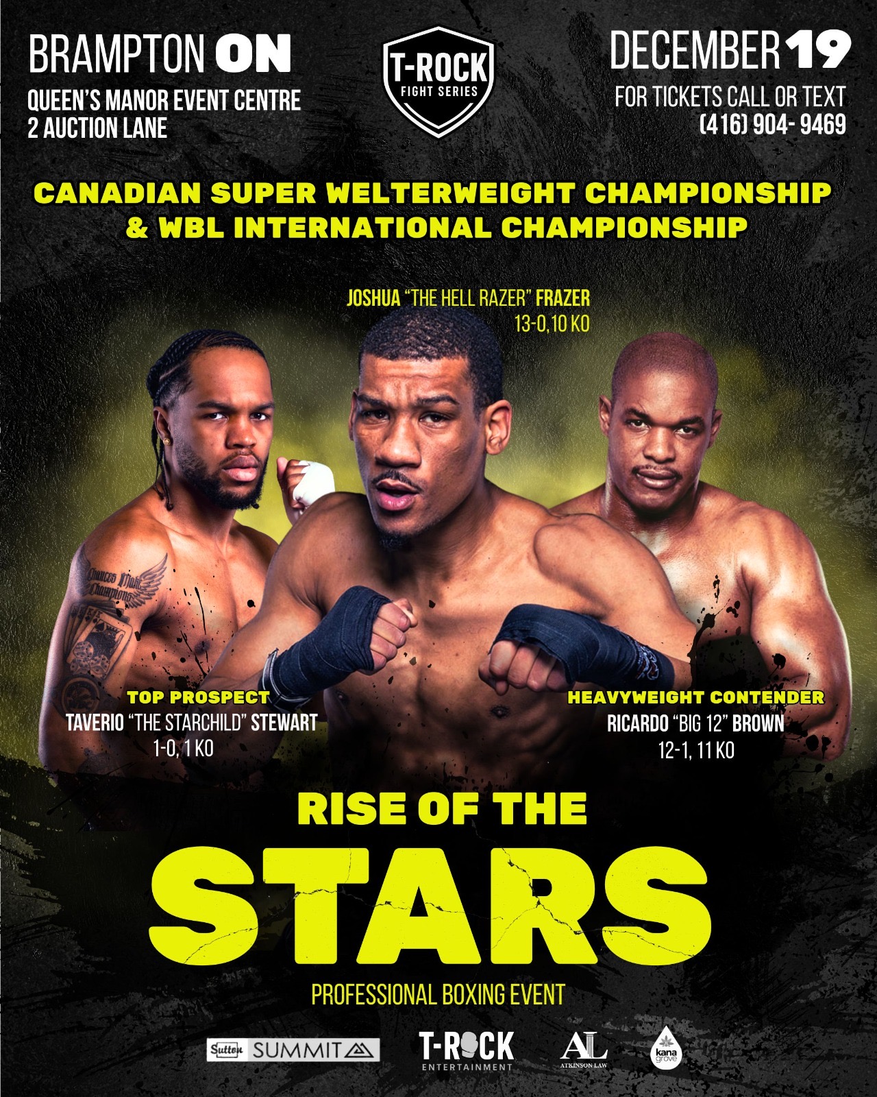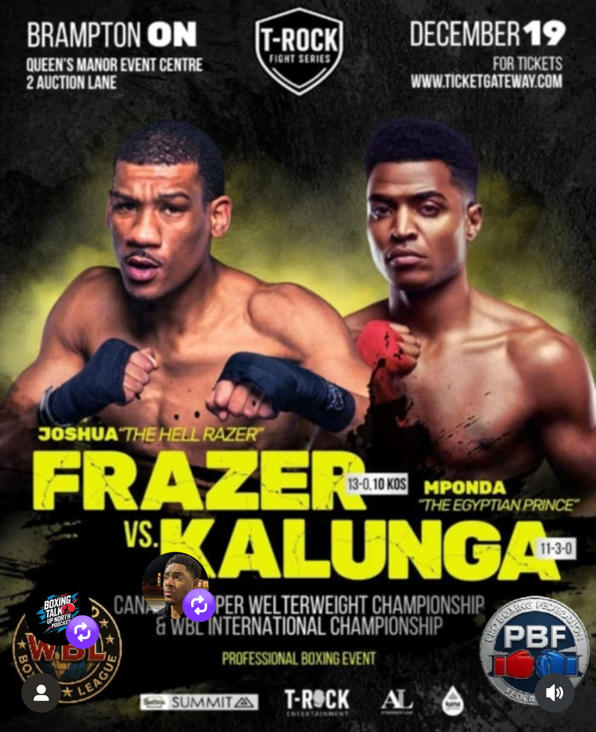 Live Professional Boxing. Canada's newest Boxing Platforms Brings Live Boxing back to Brampton. Headlining Joshua " The HellRazer" Frazer as he puts is undefeated 13-0 (11KO) record on the line against dangerous 11-3 (3KO) Mponda Kalunga for the Vacant Canadian and WBL International Super Welterweight titles. Plus the return of Ricardo "Big 12" Brown as he gets back in the ring to resume his 12-1, 11ko march to the top of the Heavyweight rankings. Plus the long awaited Canadian debut of one of Canada's most promising and exciting prospects and Brampton's very own Taverio "The Starchild" Stewart, plus more talented fighters from across the GTA and Canada This card promises to bring a night of big KOs and Excitement for fan of all ages. DONT MISS OUT GRAB YOUR TICKETS BEFORE THEY ARE ALL SOLD OUT.