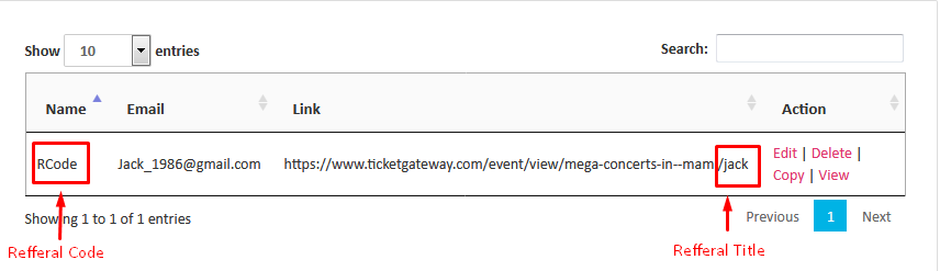 You can click on “View” to check the referral performances like ticket sales and total commission, etc.